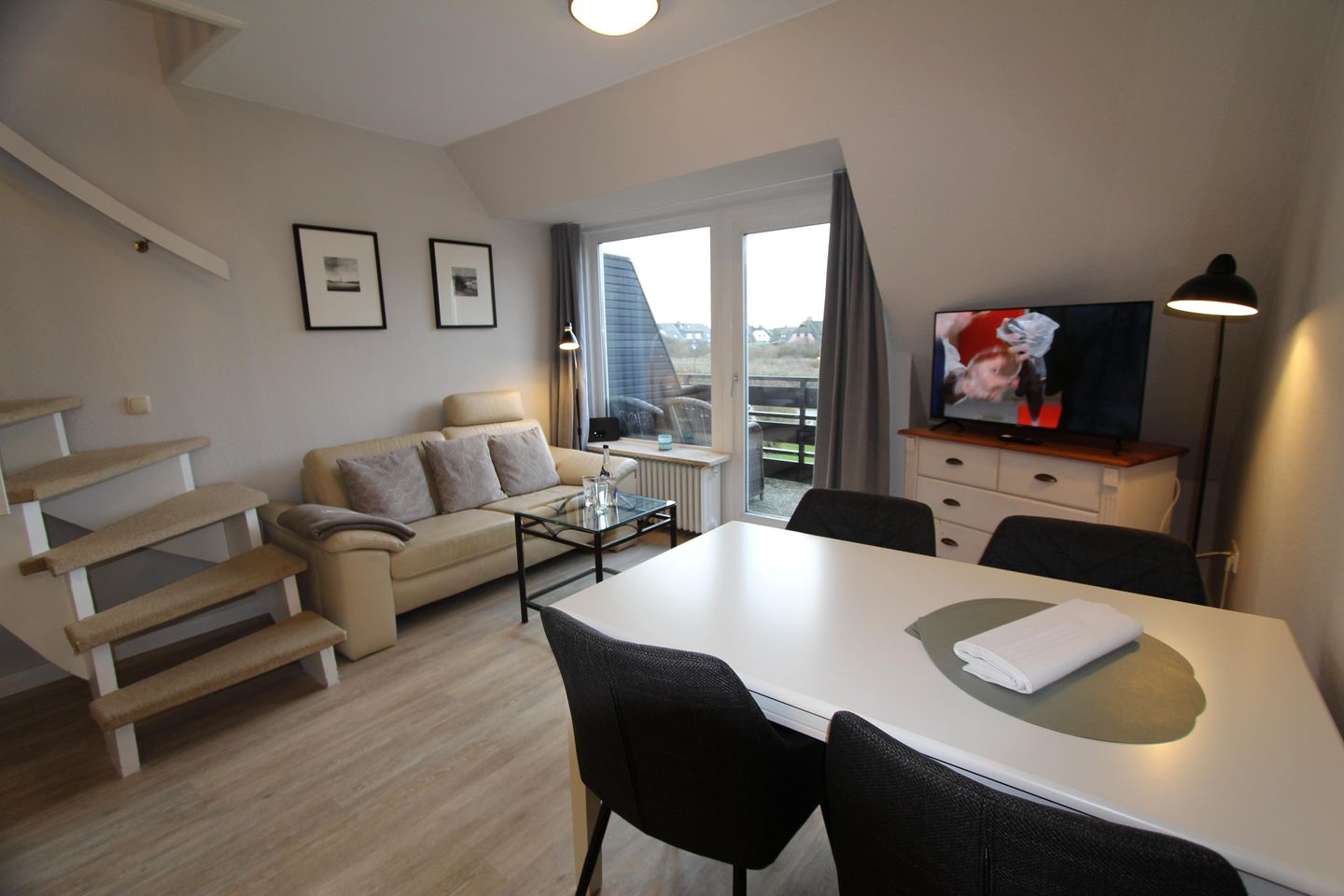 Im Obergeschoss auf der Wohnebene befindet sich ein Schlafraum mit zwei Einzelbetten. Darüber hinaus finden Sie im Dachgeschoss einen Doppelschlafraum, in dem Sie ruhig träumen können.