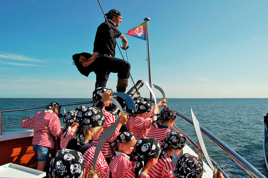 Einmal als Pirat in See stechen und auf den Weltmeeren Abenteuer erleben – davon träumt wohl jedes Kind. Die Kaperfahrt auf der „Gret Palucca“ lässt für Kinder im Alter von vier bis 8 Jahren diesen Traum wahr werden. Ausgestattet mit Augenklappe und Säbel erleben die Nachwuchspiraten ein ganz besonderes Spektakel mit Schatzsuche, Piratenmutprobe und jeder Menge Spaß auf der 2-stündigen Seefahrt. Erwachsene zahlen 22 Euro, Kinder (vier bis 14 Jahre) zahlen 17 Euro. Tipp: Wegen der großen Nachfrage ist es ratsam, die Tickets online oder vor Ort im Vorverkauf lösen. Verkaufsstellen auf Sylt: Hafen List, Hafen Hörnum, Bahnhofsvorplatz Westerland. Bitte beachten Sie, dass Kinder nur in Begleitung Erwachsener teilnehmen können.